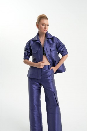 M7K’nin cesur ve trend odaklı tasarımlarından biri olan Morcivert Parlak Dokulu Kargo Pantolon, göz alıcı kumaşı ve fonksiyonel detaylarıyla tarzınıza sportif bir şıklık katıyor.
