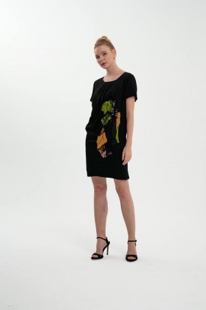 Kayık yaka tasarımı, zarif bir görünüm sağlarken, dikkat çeken cesur pulpayet göğüs dekoltesi ile tüm gözleri üzerinize çekeceksiniz. Asimetrik yırtmaç detayı ise elbiseye hareket katarak feminen bir dokunuş kazandırıyor.